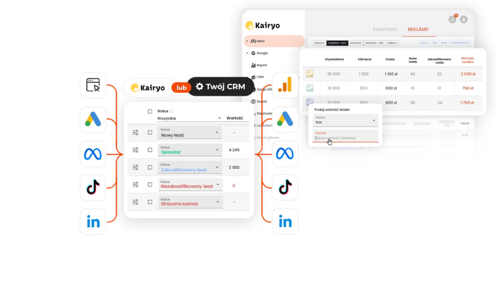 Kampanie uczą się na danych z CRM, więc budżet idzie w stronę kontaktów, które naprawdę kupują.