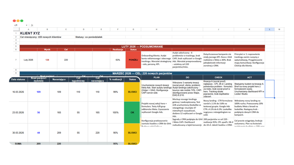 Zamiast wykresów bez sensu dostajesz raport decyzyjny: co się zmieniło, dlaczego i co robimy dalej. Każda rekomendacja jest powiązana z Twoim celem biznesowym - nie z liczbami, które ładnie wyglądają, ale nic nie znaczą.